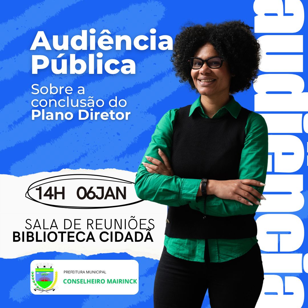 A Prefeitura Municipal de Conselheiro Mairinck convida os munícipes a participar da Audiência Pública sobre a conclusão do Plano Diretor Municipal - PDM.
